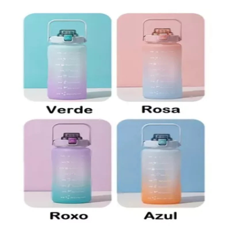 Nossa garrafa de água de 2 litros é a companheira perfeita para seus treinos, estudos ou qualquer atividade do dia a dia. Com design moderno e cores vibrantes, ela não só te mantém hidratado, mas também adiciona um toque de estilo ao seu dia.